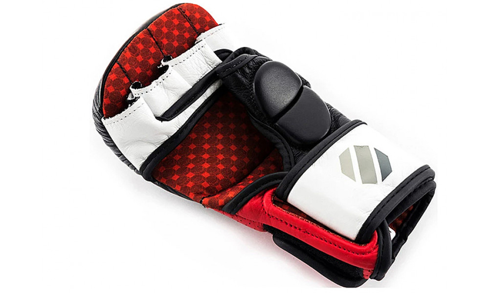 D-образная застежка позволяет добиться надежной фиксации на руке, обеспечивая максимальную безопасность и сводит к минимуму возможность смещения во время спарринга. Дополнительное покрытие над пальцами служит для защиты и не мешает производить захваты противника.