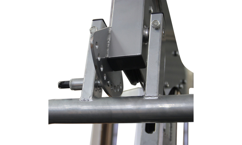 Весовой стек имеет общую массу 90 кг , в комплекте 18 чугунных плит по 5 кг. Ролики на подшипниках обеспечивают плавное движение. Весовой стек имеет защитный кожух для безопасности пользователя. Стальной трос в защитной оплетке так же гарантирует безопасность при выполнении упражнений. Тренажер имеет мощную раму из металлического профиля размером 50х70 и 50х50 мм и толщиной 2 мм, с порошковой окраской в нейтральный серый цвет, который гармонично впишется в любой интерьер.